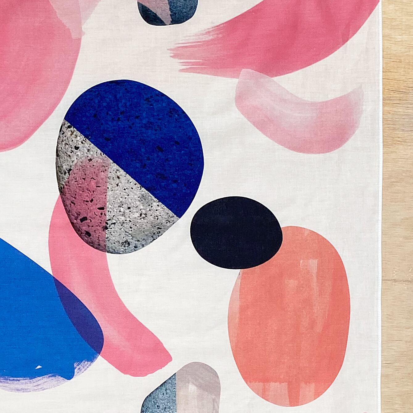 硬い物が溶けていく瞬間、絵の具の液体感と石の質感、拭き取れる布をキャンバスにして交わることのない瞬間を合わせた作品です。