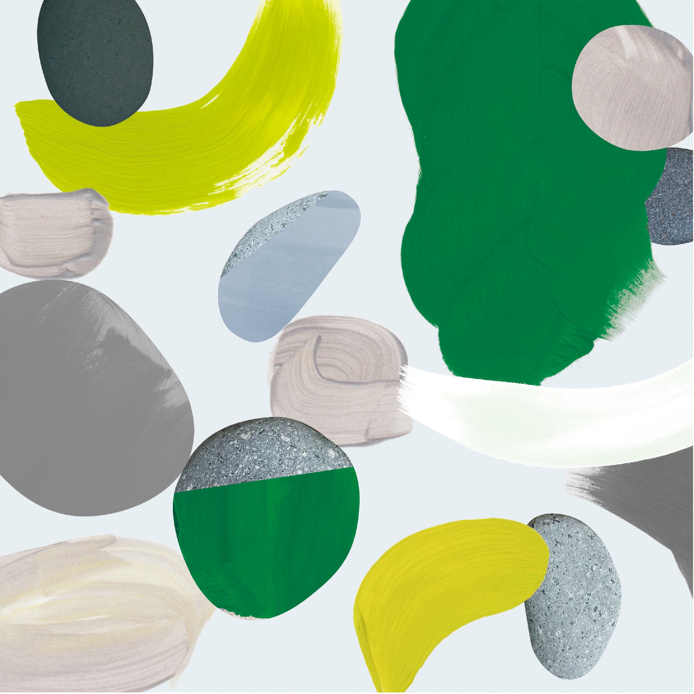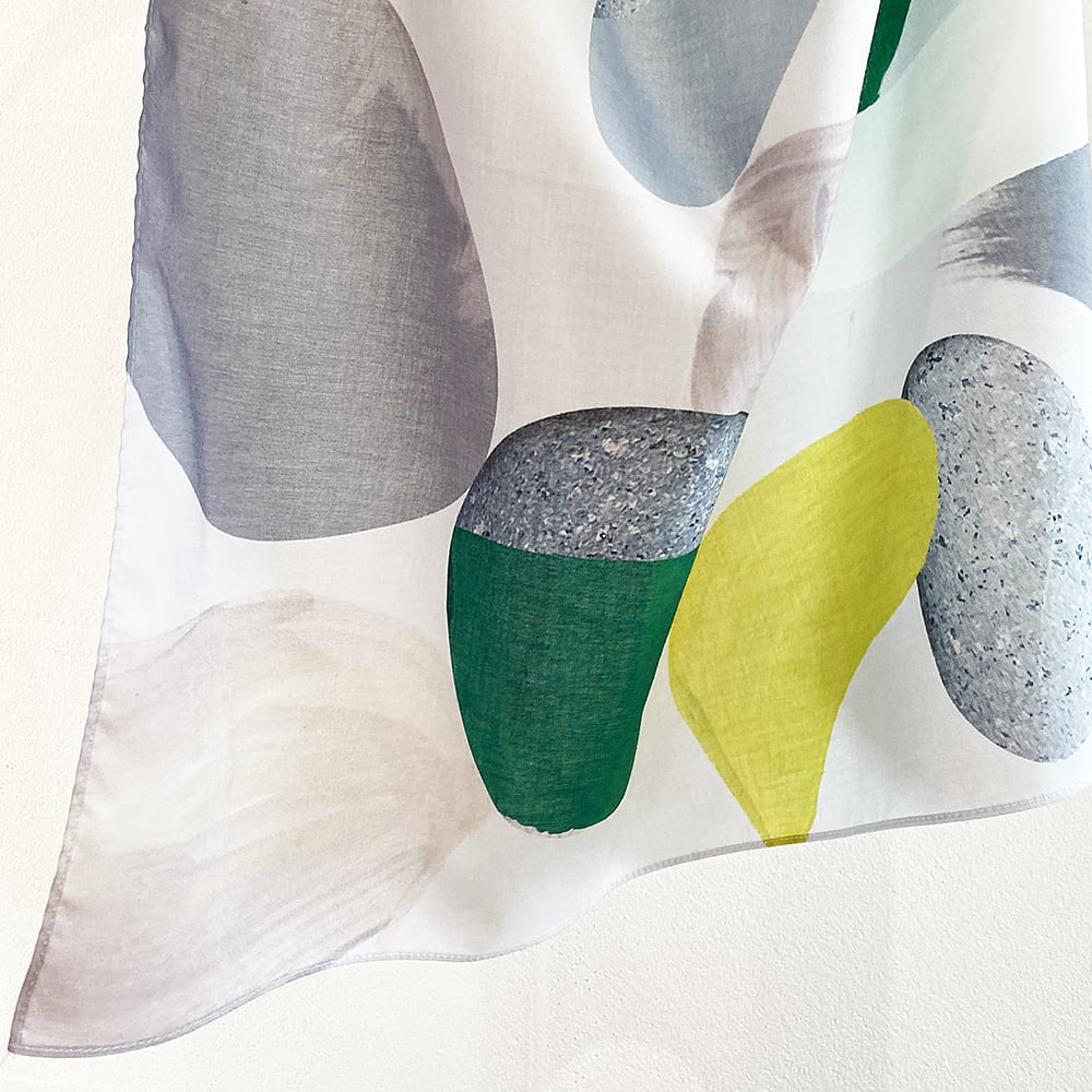 硬い物が溶けていく瞬間、絵の具の液体感と石の質感、拭き取れる布をキャンバスにして交わることのない瞬間を合わせた作品です。